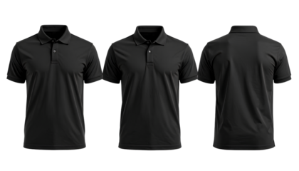 black Polo Shirt Mockup from Front, Back, Side, and 34 Views, Isolated on Transparent Background PNG