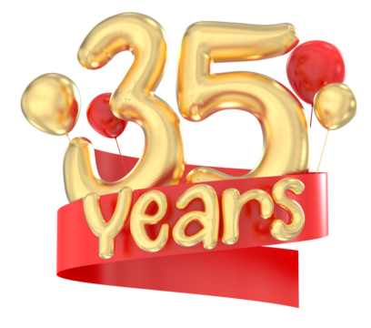 35th Anniversary Celebration with Balloons - Isolated