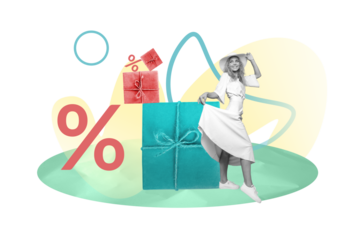 Floating transparent red discount cubes with percent signs