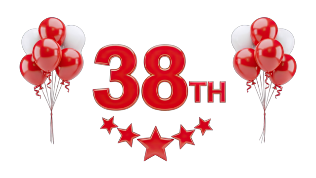 3D Render Golden Balloons Forming Number Thirty-Eight Transparent PNG