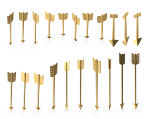 3D arrow png pointing in one direction, arrow attack, gold arrow, purpose, objective, point direction, some arrows, several arrows, different arrow, flying or firing arrow, archer, archery
