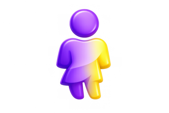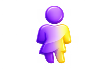 3d female avatar icon in shiny purple and yellow gradient with transparent background representing user, identity, or gender
