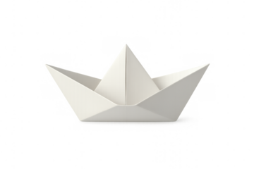 Paper boat floating, white origami craft, symbolizing childhood memories, adventure, voyage, and dreams on transparent background