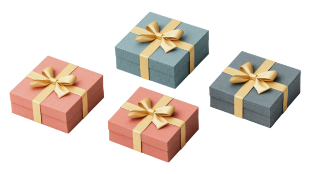 Different green and red christmas gift boxes stacked isolated on white background, PNG