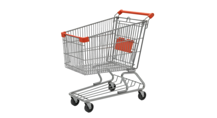 Isolated 3D Render of Silver Shopping Cart with Red Handle Transparent