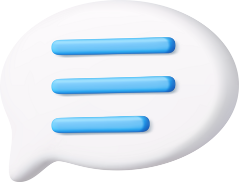 Glossy blue speech bubble communicating message, dialog, and chat on social media apps, on transparent background