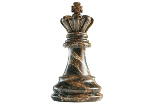 Marble chess king piece PNG with transparent background, elegant game element cutout for strategy design, business concepts, and graphic resources.