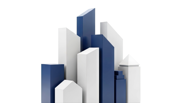 Monochromatic Abstract Cityscape with Geometric Buildings