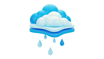 3D Cartoon Rain Cloud with Droplets