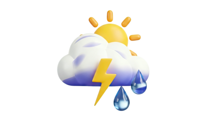 3D Weather Icon: Sun, Cloud, Lightning, and Rain