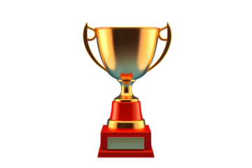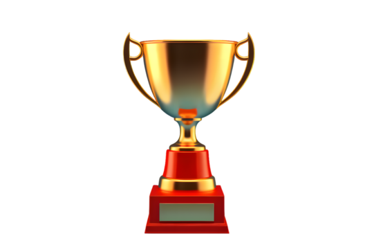 Winner golden trophy cup on transparent background. Triumph champions, celebration sports winner awards. Perfect for recognizing achievements, won or celebrating success.