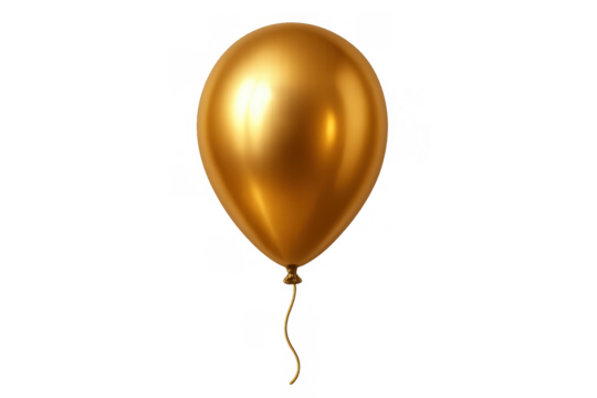 Golden helium party balloon floating, design element for celebration, anniversary, birthday, luxury greeting