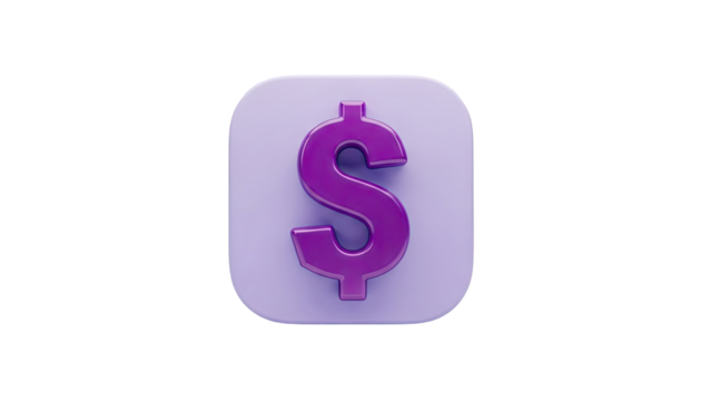 3D purple dollar sign icon on a light purple rounded square on transparent background