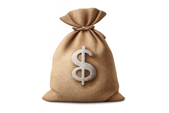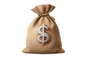 Money bag with dollar sign on transparent background representing financial success, wealth, and saving