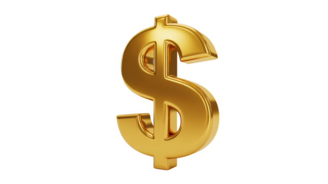 Transparent 3d gold dollar symbol isolated for finance and economy