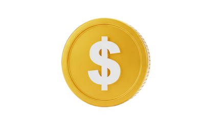 3D Gold coin with dollar sign on transparent background