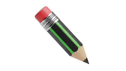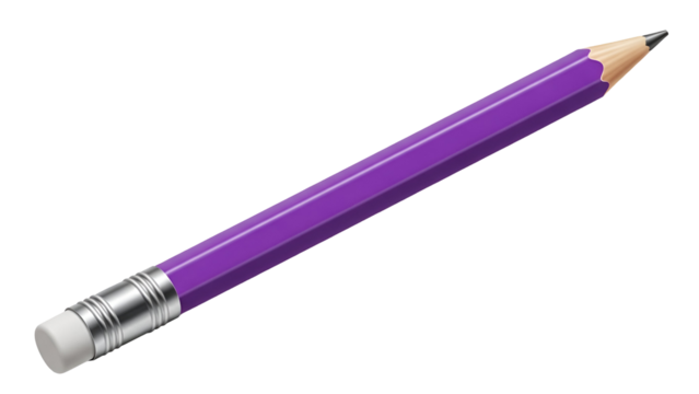 3D Rendered Yellow Pencil with Black Tip and Purple Eraser