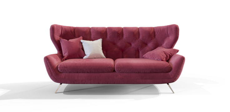Soft Pink Sofa with pillows 3d render isolated premium PNG on transparent background with shadow