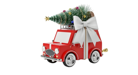 Christmas tree delivery car 3d rendered, isolated on transparent background