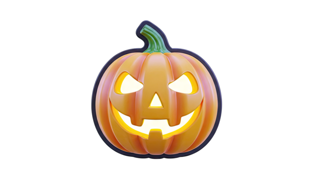 Spooky halloween jack o lantern pumpkin glowing on transparent background.
