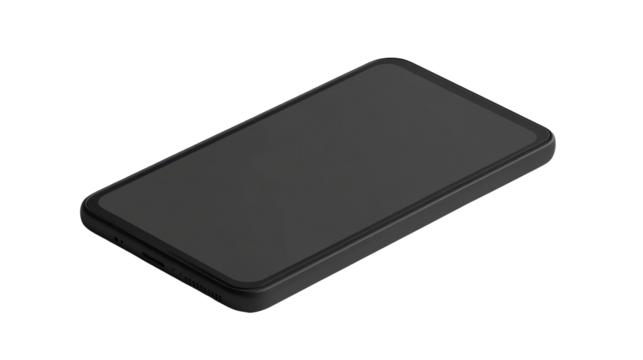 High-quality isometric mockup of a black smartphone with a blank screen, perfect for app presentations or website designs.