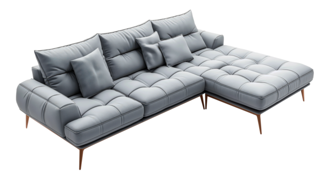 Modern Sectional Sofa with Cushions in Light Gray Blue — Isolated PNG