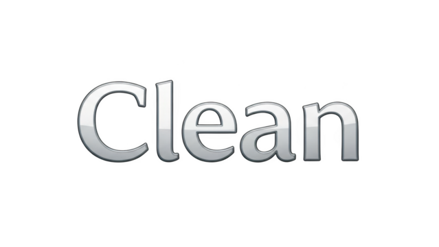 Silver word Clean on black background text lettering
