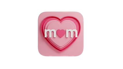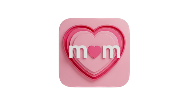 Three dimensional bubbly letters spelling M O M with a prominent shiny red heart symbol in the center mom mother love typography character white 3d bold cute graphic transparent background