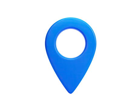 Flat Style Blue Map Marker Icon with Minimal Design, Top View, isolated on a transparent background