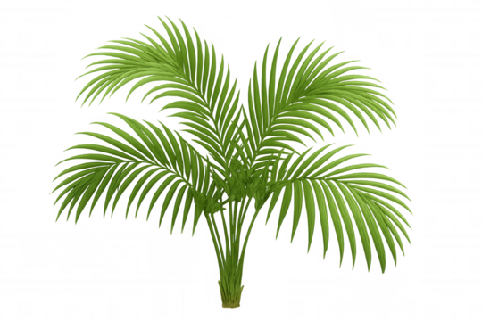 Realistic 3d rendering featuring vibrant green palm tree, standing isolated on transparent background, enhancing tropical design compositions