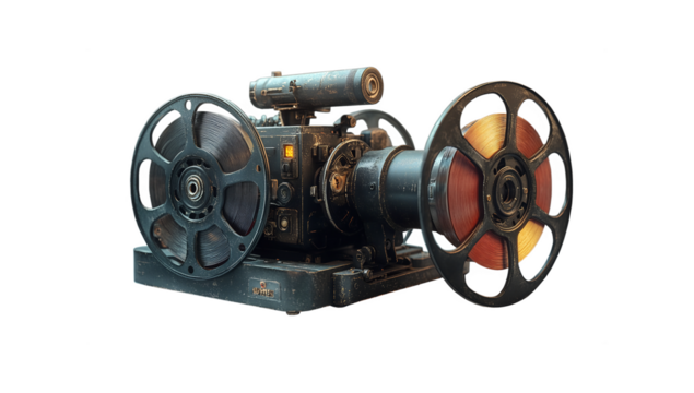 Vintage film projector reels mechanism antique cinema technology png isolated on transparent background
