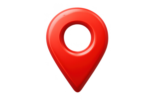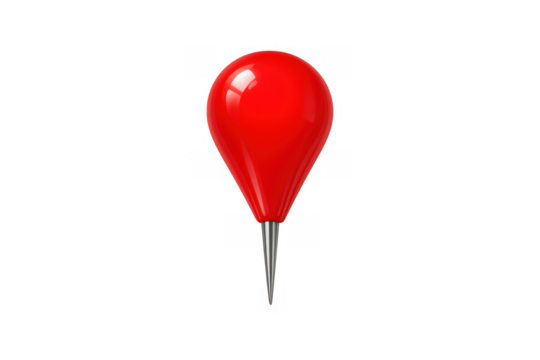 Shiny red location pin pointing position on a transparent background