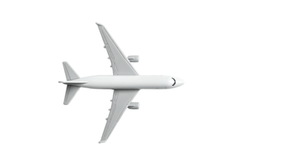 3D render of a white airplane flying, simple design, isolated on a transparent background. perfect for advertising or promotions