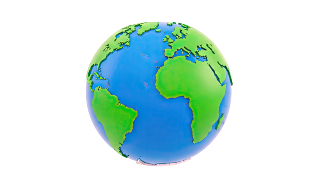 Living planet earth sphere with lush green moss and flowing waterfalls, symbolizing nature, conservation, and ecology on transparent background
