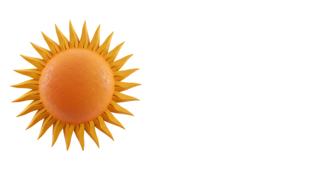 Bright Stylized 3D Sun Illustration with Wavy Rays Representing Summer Heat and Solar Energy transparent background