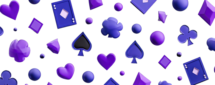 A pattern of vibrant purple and blue playing card symbols on a black background