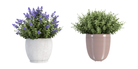 Minimalist purple potted plants on transparent background