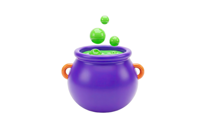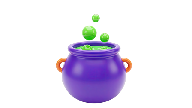 3D Cartoon Cauldron with Bubbling Green Potion and Bubbles