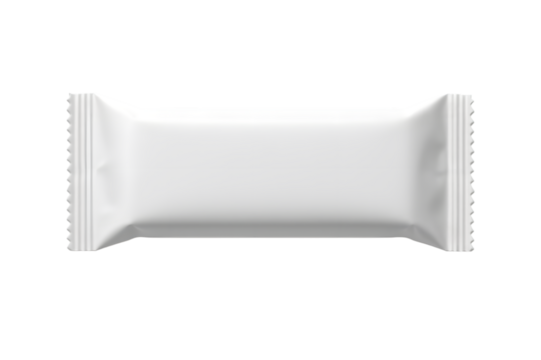 Plain white rectangular wrapper for snack bar or candy, front view photorealistic mockup, isolated on transparent background