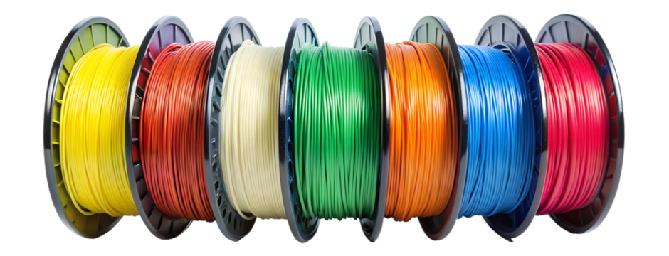 Spool of 3D Printing Filament: A vibrant display of colorful 3D printing filament, meticulously arranged in a circular spool.