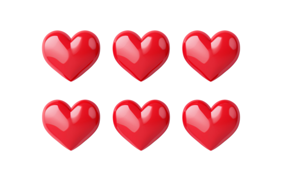 shiny 3D red hearts isolated on transparent background, Valentines day love romantic decoration