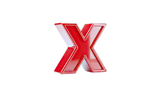 3D Red Letter X Symbol on transparent background