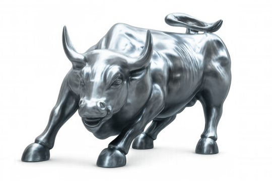 Futuristic metallic fluid sculpture on transparent background