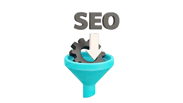 Seo text with target symbol on transparent background