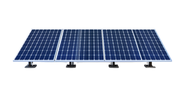 A solar panel with shadow, solar energy, green energy, isolated on transparent background, png file