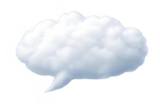 White fluffy cloud speech bubble 3d rendering representing thought, communication, and dialogue on transparent background