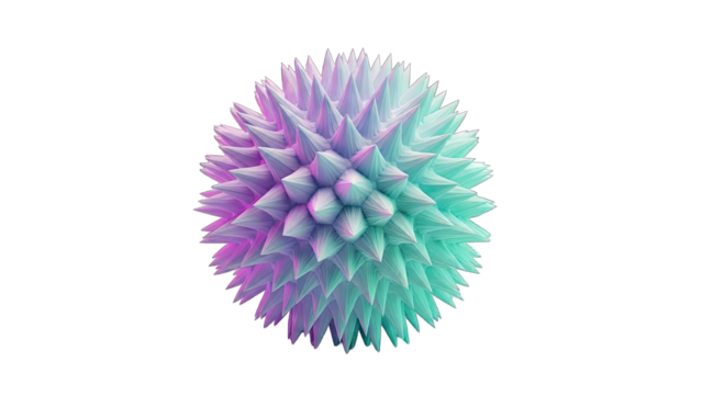 3D Spiky sphere with red and green halves and yellow spikes on transparent background