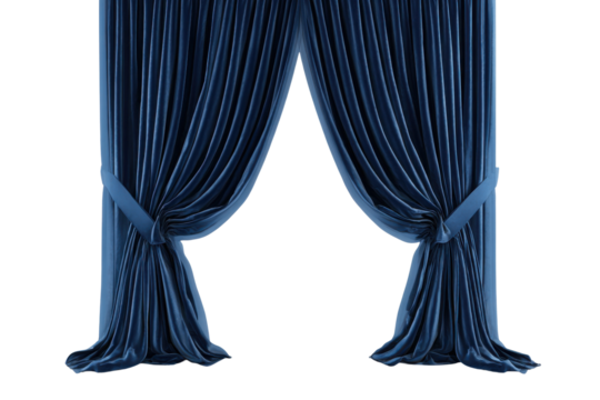 Blue velvet theater curtains isolated on transparent background