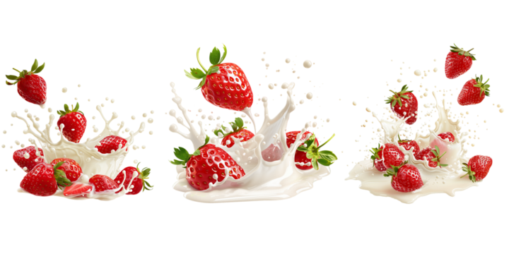 strawberries milk , strawberry yogurt isolated in white transparent background png