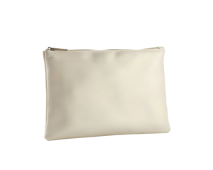 A 3D rendering of a blank canvas clutch for cosmetics mockup is shown isolated from a top view This template represents an empty small sac perfect for showcasing a clear cotton wallet or